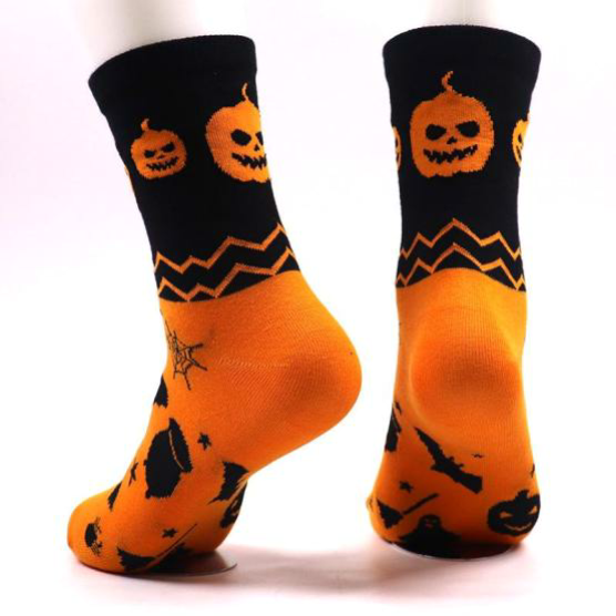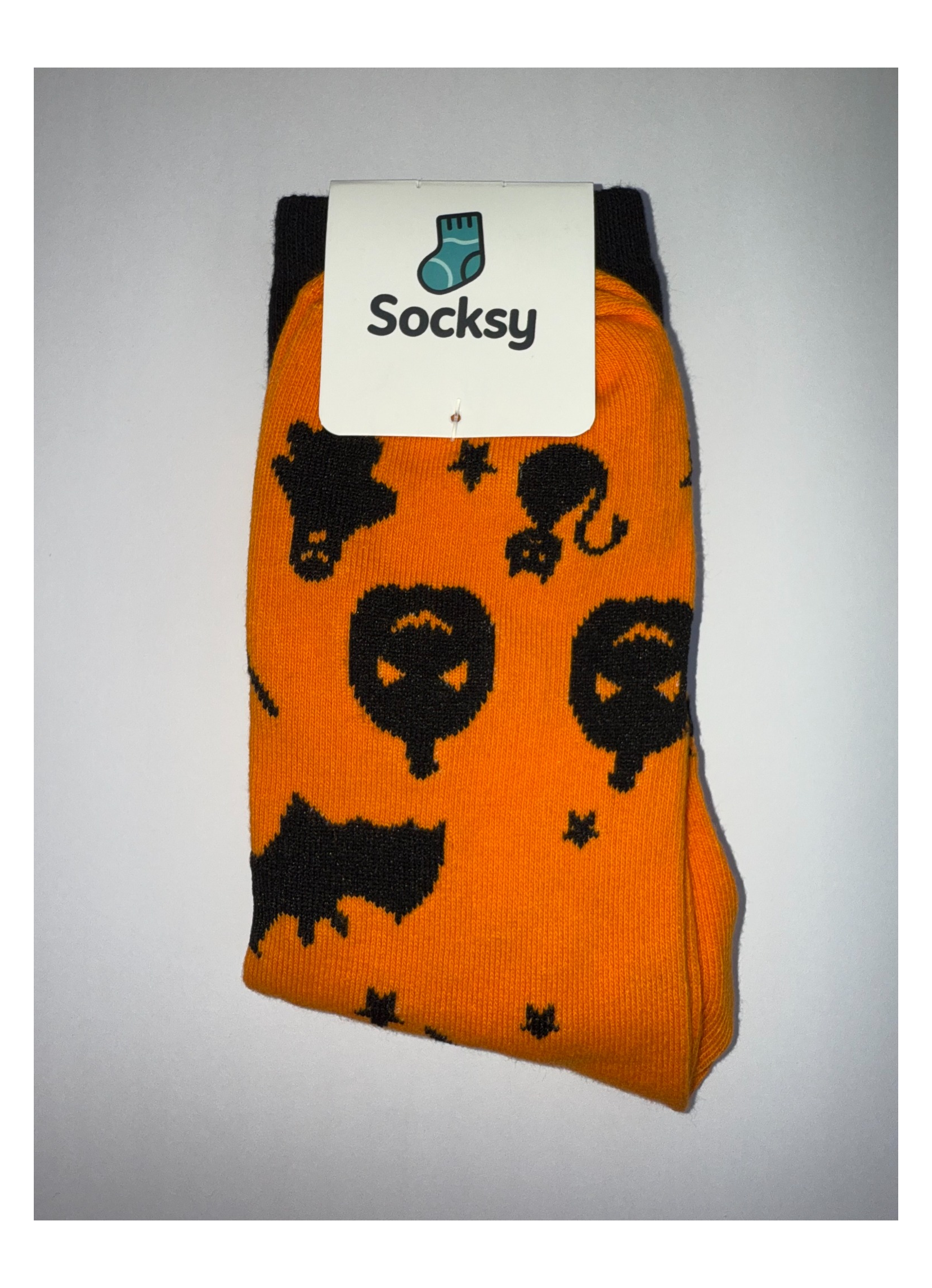 Creep it real with Trick & Treat — a frightfully fun pair of socks bursting with Halloween spirit. Featuring a haunted mix of jack-o’-lanterns, spider webs, witches, and bats on a bold black-and-orange canvas, they’re perfect for spooky season or just showing off your dark side year-round.