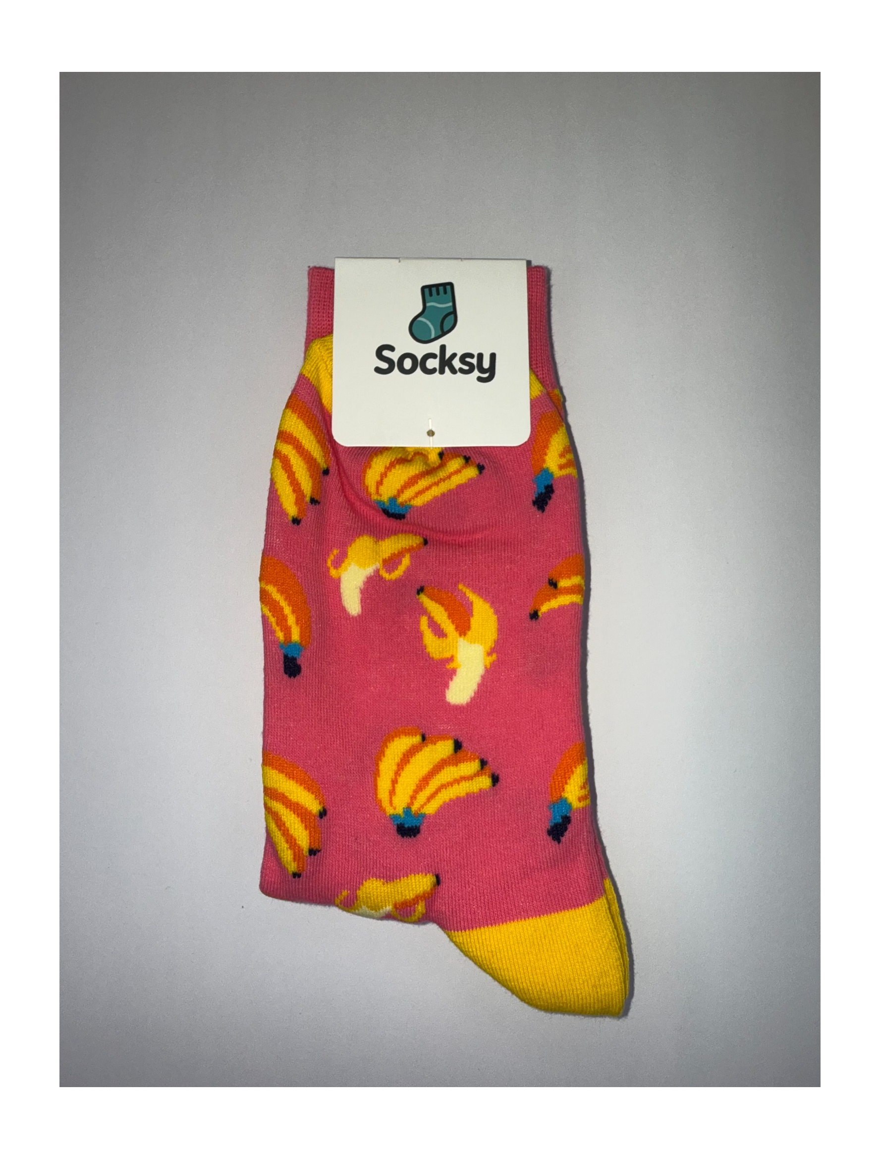 Go bananas — literally. Banana Drama is here to stir up your sock drawer with a punch of pink, a pop of yellow, and just the right amount of fruity flair. Whether you’re feeling playful or just want to peel away from the ordinary, this pair brings the bold. Covered in cheerful banana bunches and peels, these socks add instant character to any outfit — no potassium required.