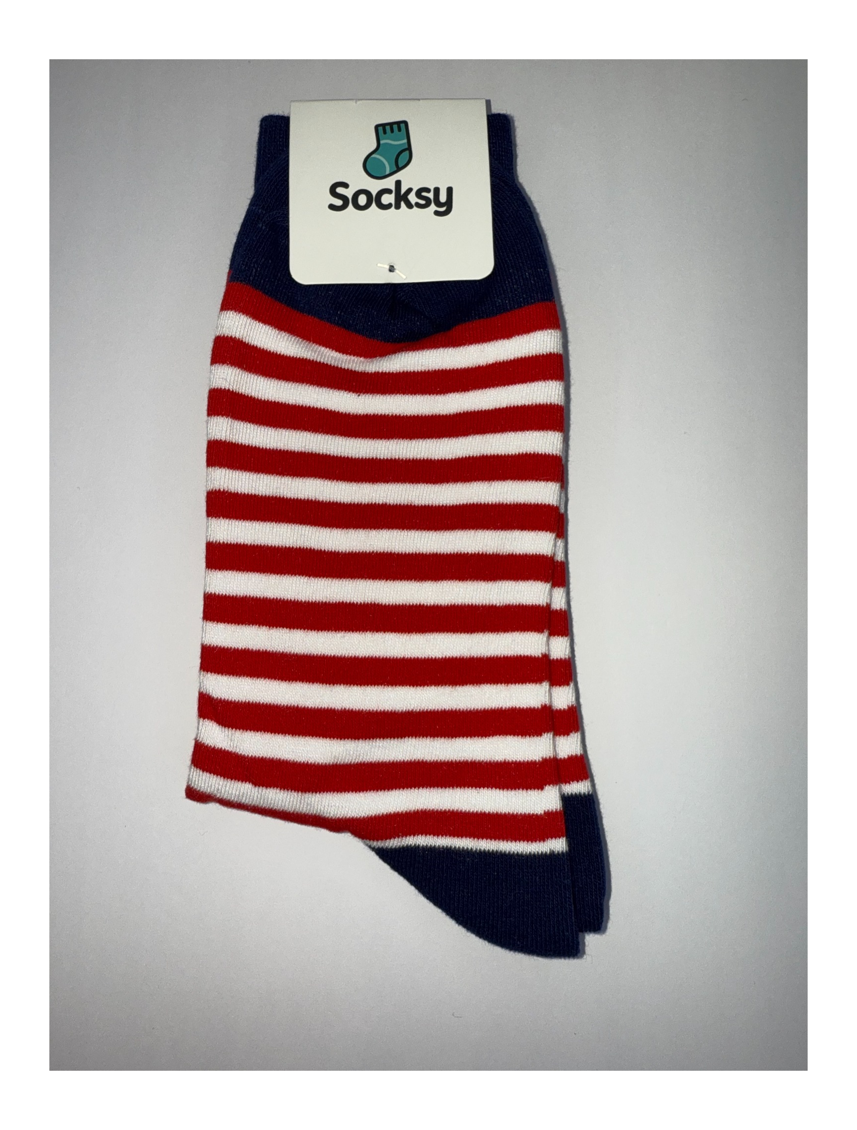 Step loud, proud, and unapologetically bold. United Toes brings the full star-spangled attitude with classic red stripes, white bands, and a constellation of crisp white stars on a deep navy backdrop. Perfect for fireworks, game days, barbecues — or just showing off your freedom to wear fun socks any day of the year. Because at Socksy, we stand for liberty, comfort, and style — one foot at a time.