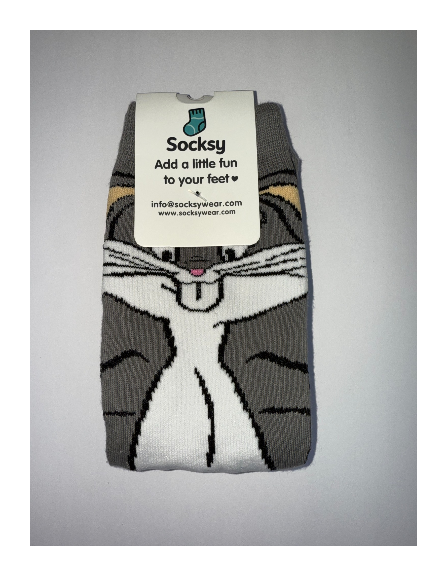 Classic attitude meets cozy style in What’s Up Socks? Featuring the one and only Bugs Bunny in full smirking glory, this pair brings that nostalgic Saturday-morning energy to your everyday step. The sharp gray-and-white character wrap design adds playful flair while staying true to that legendary Looney Tunes swagger. Slip these on when you're feeling witty, mischievous, or just ready to outsmart the day.